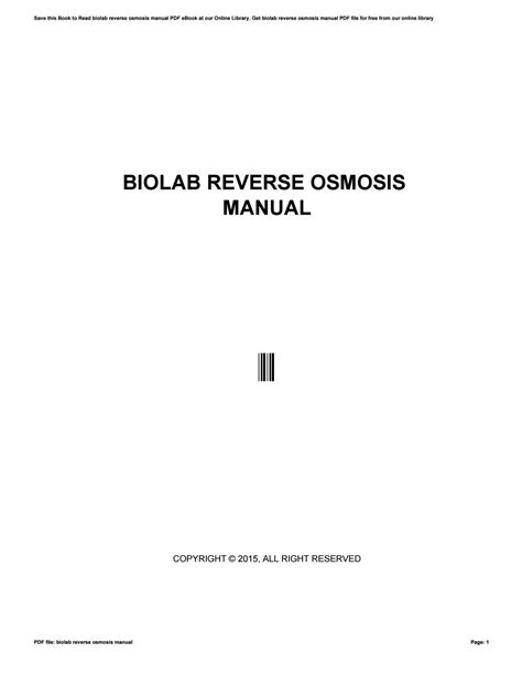 Read Online biolab reverse osmosis manual Reader Gutenberg